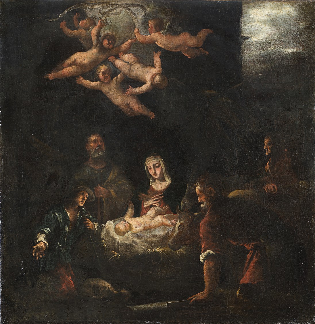 Scuola italiana del secolo XVII Adorazione dei pastori Olio su tela cm...