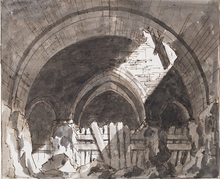(attr.) "Rudere di un sotterraneo" penna e inchiostro bruno, acquarellato in bruno su tracce a matita nera (mm 230x275) In cornice