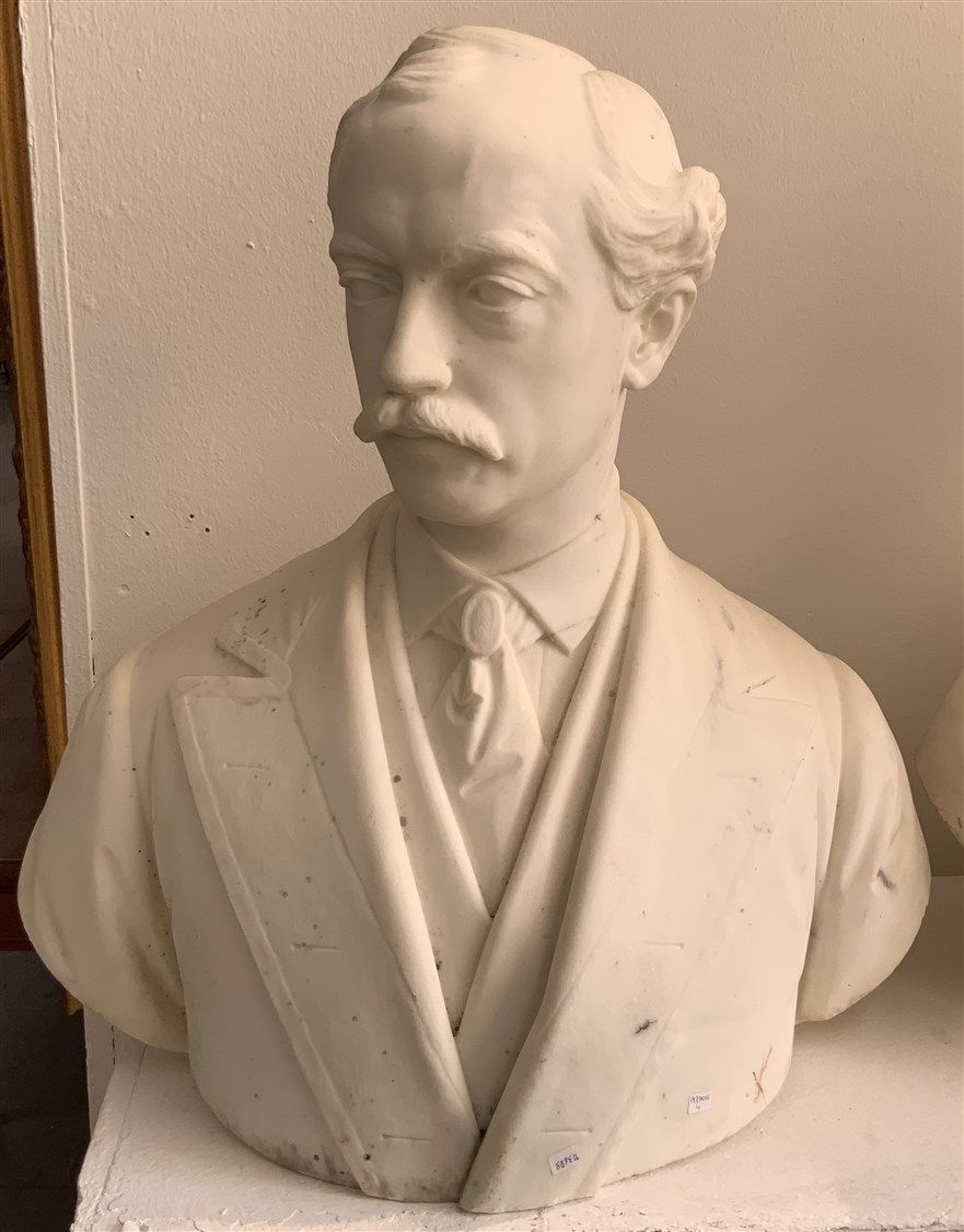 Scultore del XIX Secolo "Gentiluomo" busto in marmo (h cm 59) (difetti)