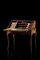 Scrittoio da centro a ribalta lastronato in palissandro e legni vari con anta...
