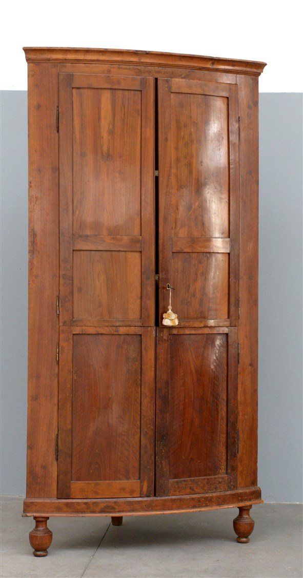 Angoliera in ncoe a fronte curvilineo, quattro ante riquadrate e piedi anteriori a cipolla. Secolo XIX (cm 112x211x65) (difetti)