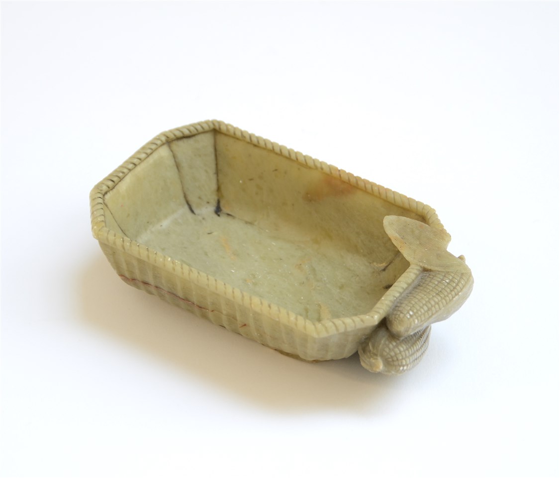 Ciotola in pietra saponaria scolpita a pannocchie (lungh. cm 12) (lievi difetti)