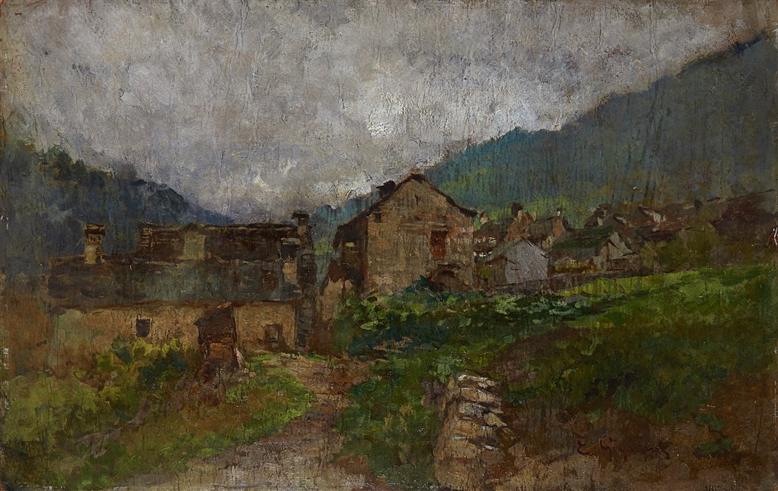 Eugenio Gignous (Milano 1850 - Stresa 1906) "Baite a Macugnaga" olio su...