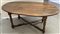 Tavolo da pranzo in noce con piano di forma ovale, gambe a rocchetto riunite da traverse sagomate, piedi a cipolla (cm 187x80x115) Secolo XVIII (difetti e restauri)