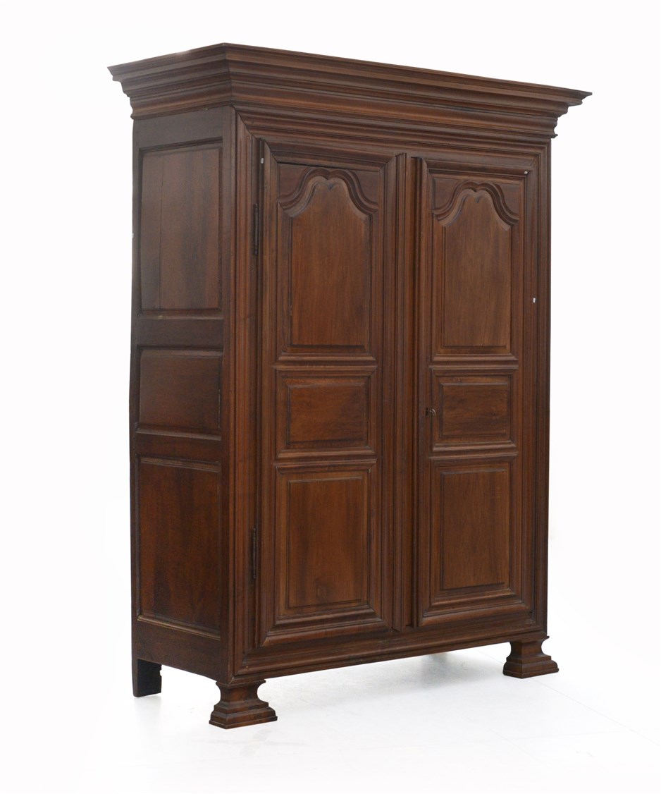 Antico armadio a due ante in noce pannelate e riquadrate (cm 175x222x72) (difetti)
