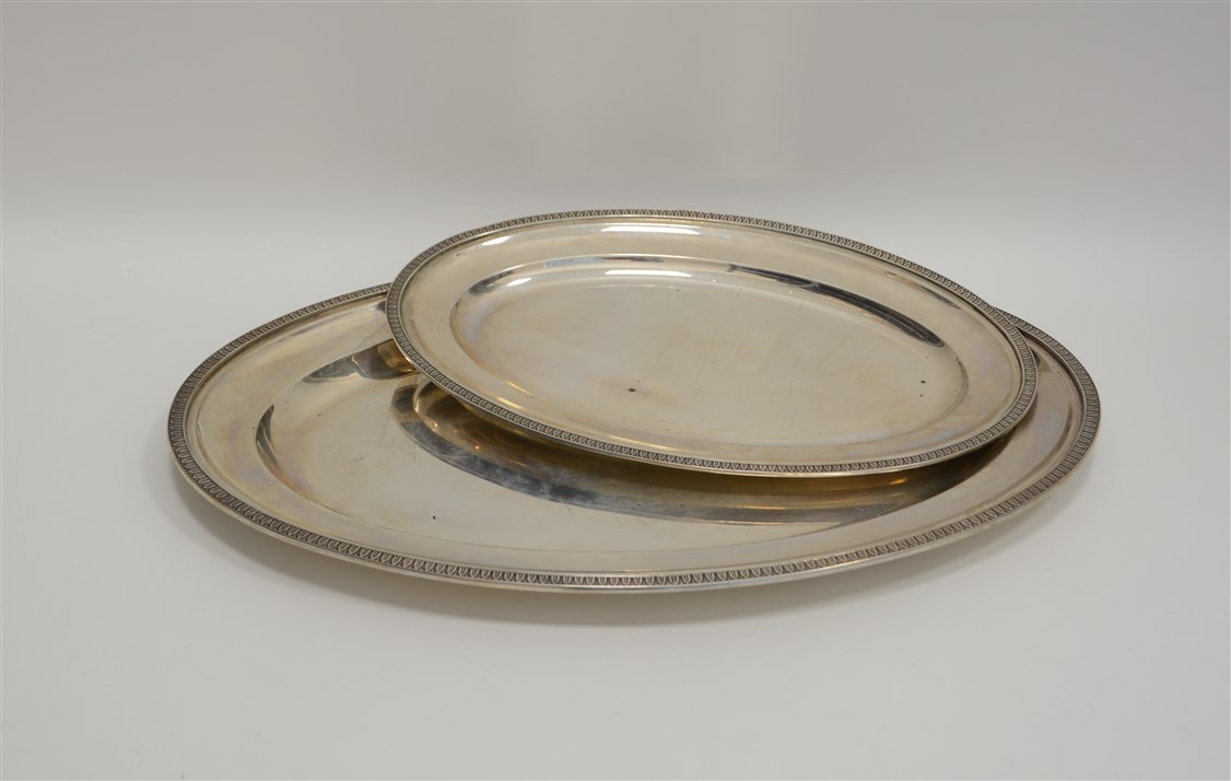 Lot 933 | Lotto composto da due vassoi di forma ovale con bordi cesellati a palmette....