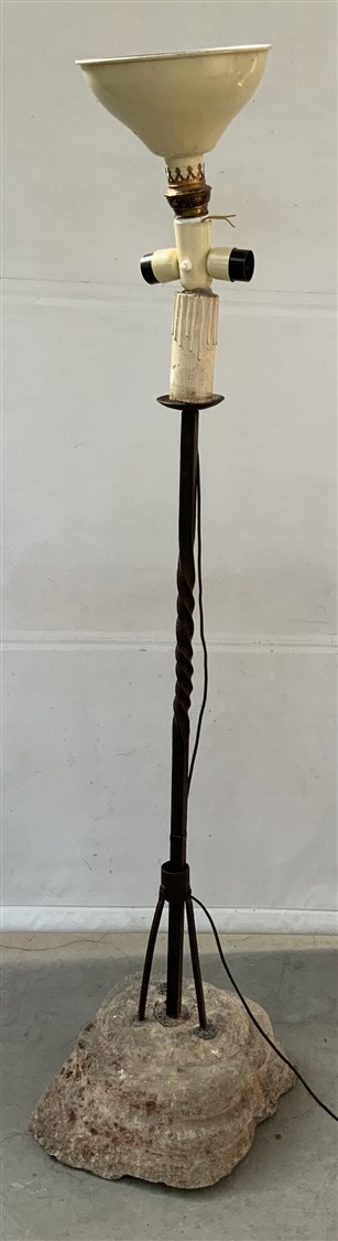 Lot 943 | Antico portacero in ferro battuto con base a capitello in pietra (h. cm 125)...