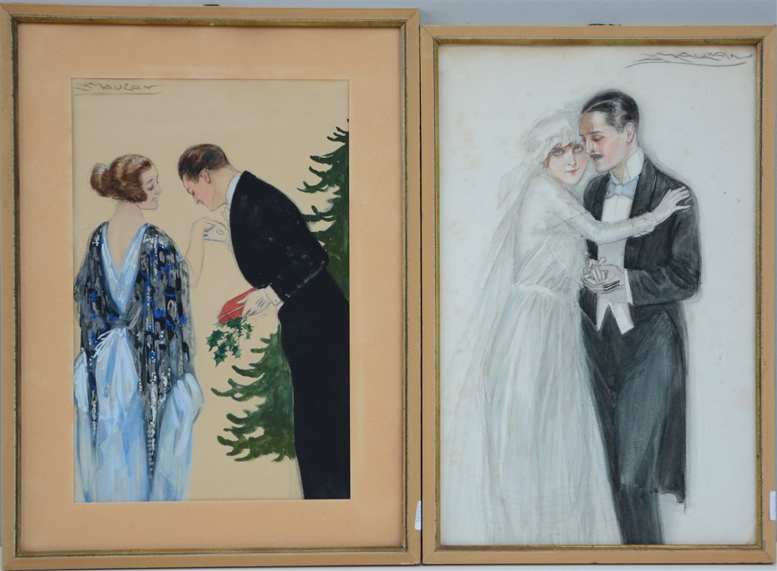 Achille luciano Mauzan (Gap 1883 - 1952) Coppia di bozzetti a tecnica mista...