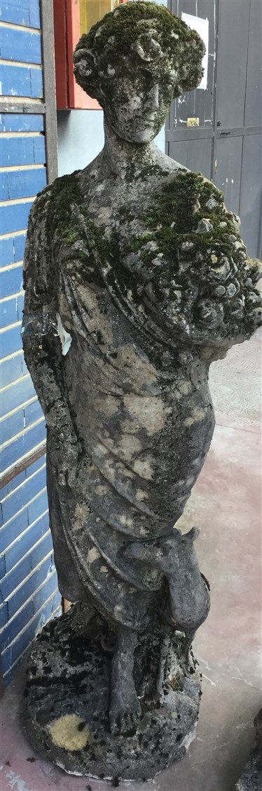 Scultura da giardino in cemento con figura femminile dal mondo classico (h cm 162)