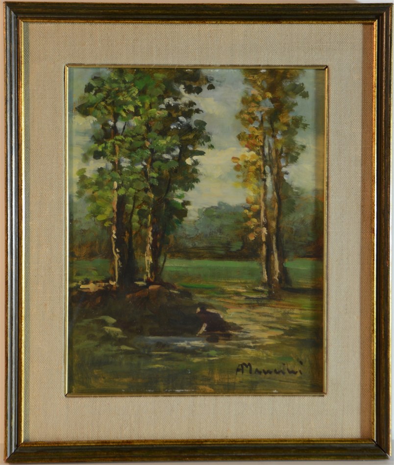 A. Mancini "Paesaggio boschivo" olio su masonite (cm 29,5x24) Firmato in basso a