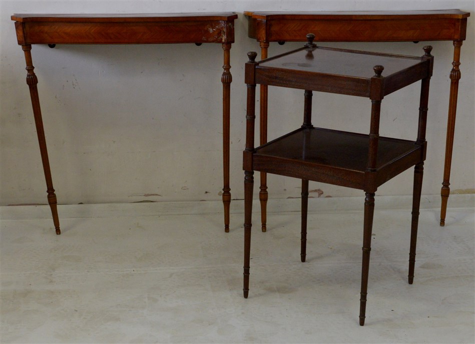 Lot 1104 | Lotto composto da due piccole consolles e un' etagere con montanti torniti (dif