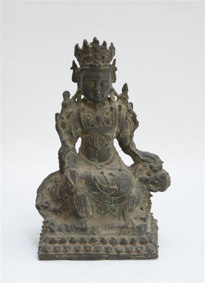 Lot 1116 | Scultura in bronzo raffigurante Bodhisattva su leone (h. cm 32) (difetti) Cina,