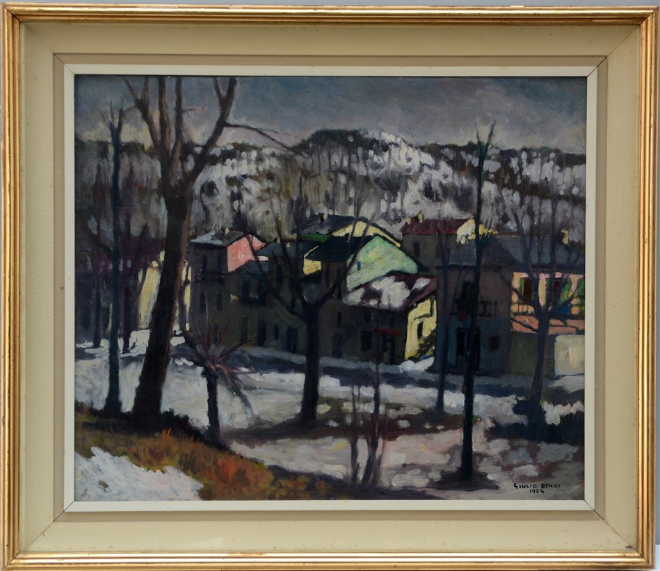 Giulio Benzi "Inverno" 1954, olio su faesite (cm 50x60) Firmato e datato in bass