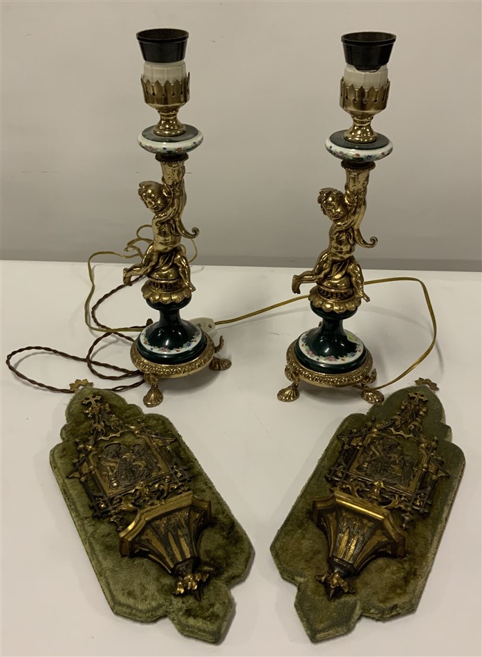 Lotto composto da due acquasantiere e due lampade (difetti)