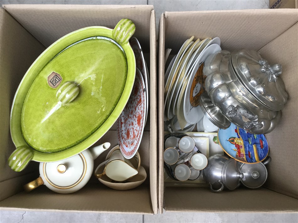 Lotto di due cartoni contenenti numerosi oggetti per la tavola (difetti)