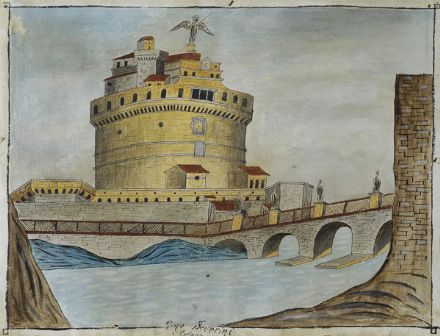 Gino Severini (Cortona, 1883 - Parigi, 1966) Castel Sant’Angelo a Roma, (1897) Acquerello e china su carta, cm. 23x30,5 In basso al centro: "Gino Severini/Cortona". Coll.D. Pascucci, Radicofani. Bibliografia: Piero Pacini, "Percorso prefuturista di Gino Severini", in "Critica d’Arte", marzo/aprile 1973, pag. 57.