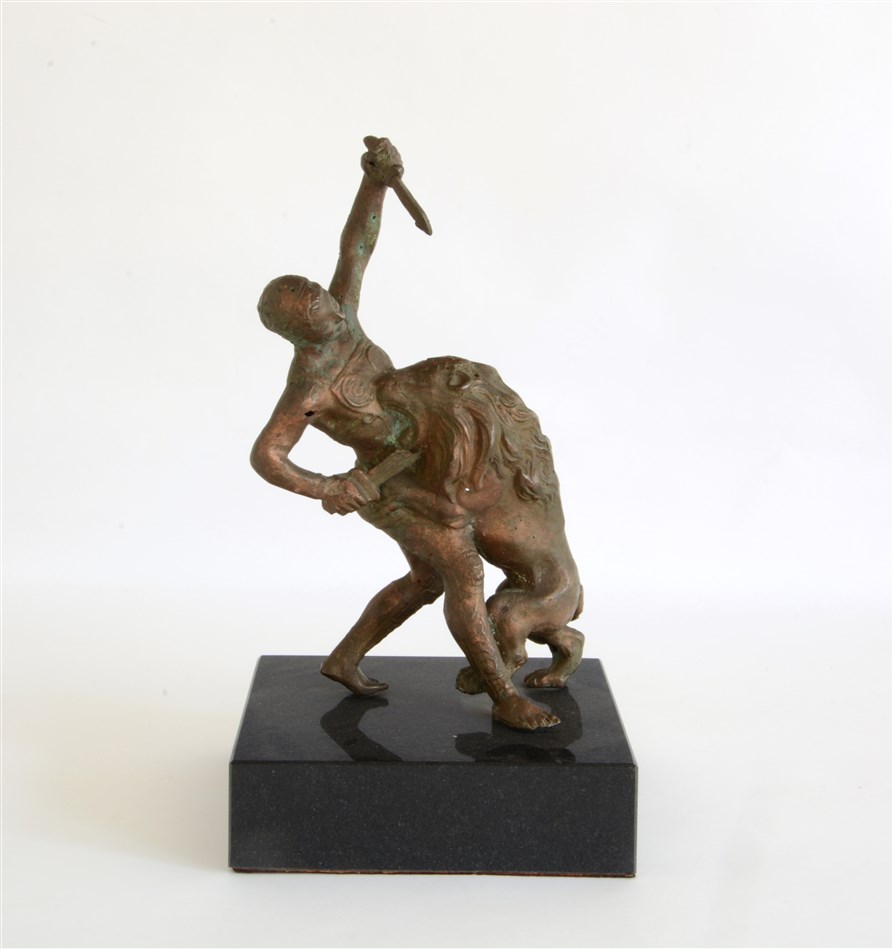 Lot 1228 | Ignoto "Gladiatore con leone" scultura in bronzo (h cm 37) poggiante su basamen