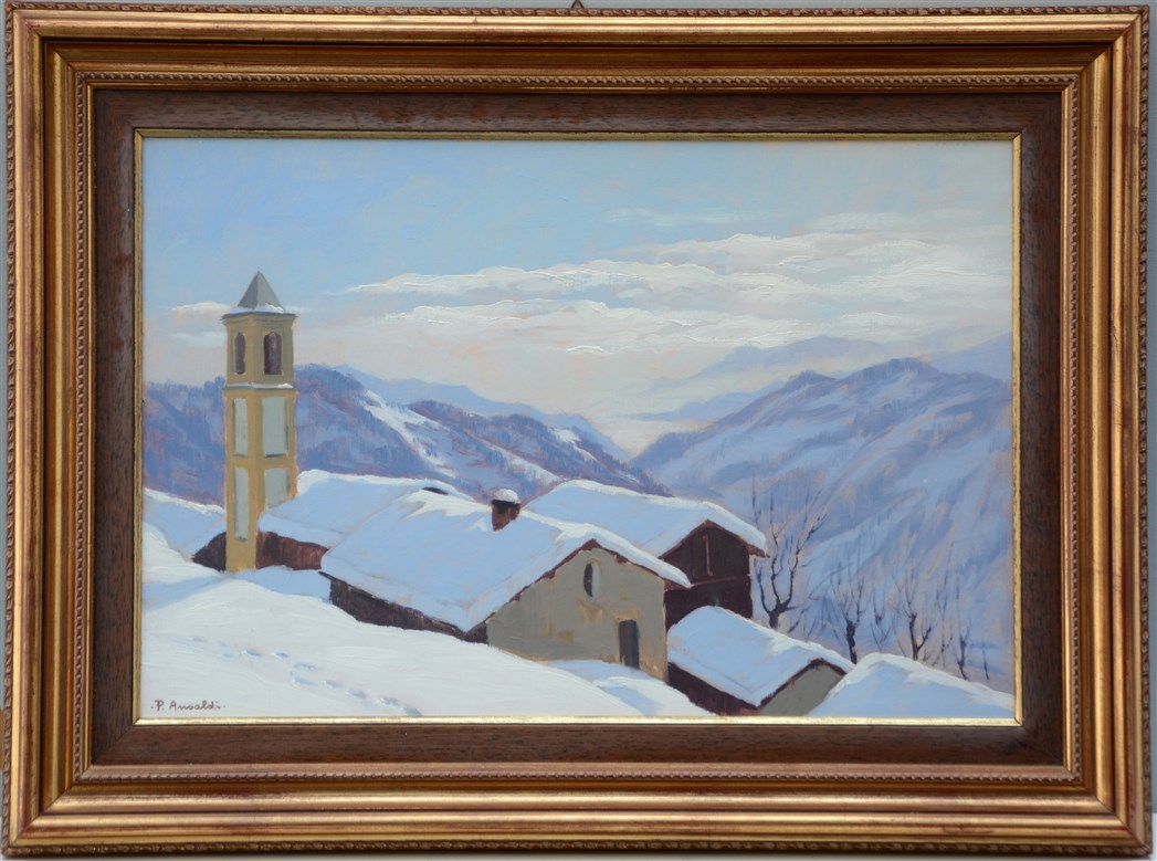 Piero Ansaldi "Mattino in Valle Stura" 1978, olio su cartone telato (cm 40x50) F