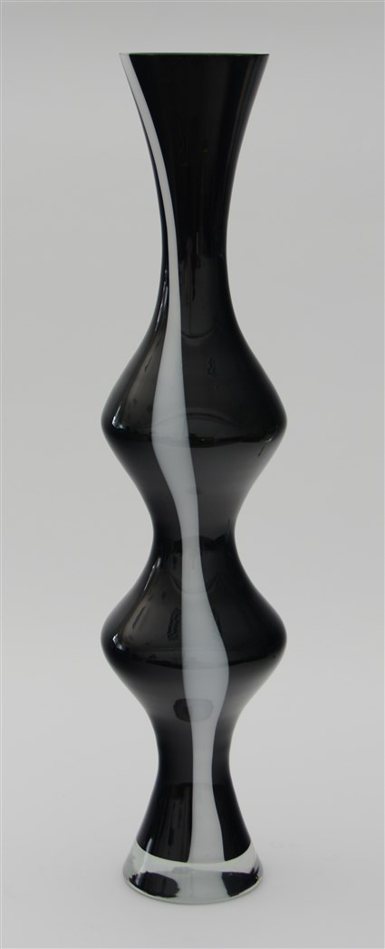 Vaso a tre strozzature in vetro sommerso cristallo, ametista scuro e lattimo (h cm 68)