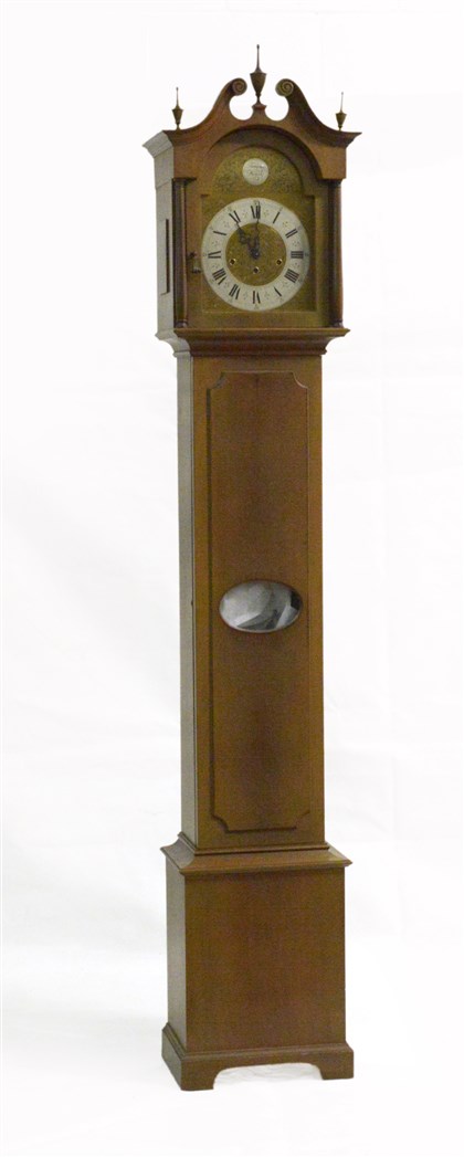 Orologio a torre con cassa decorata a pinnacoli. Quadrante in metallo a cifre romane e arabe (h. cm 200)(difetti)