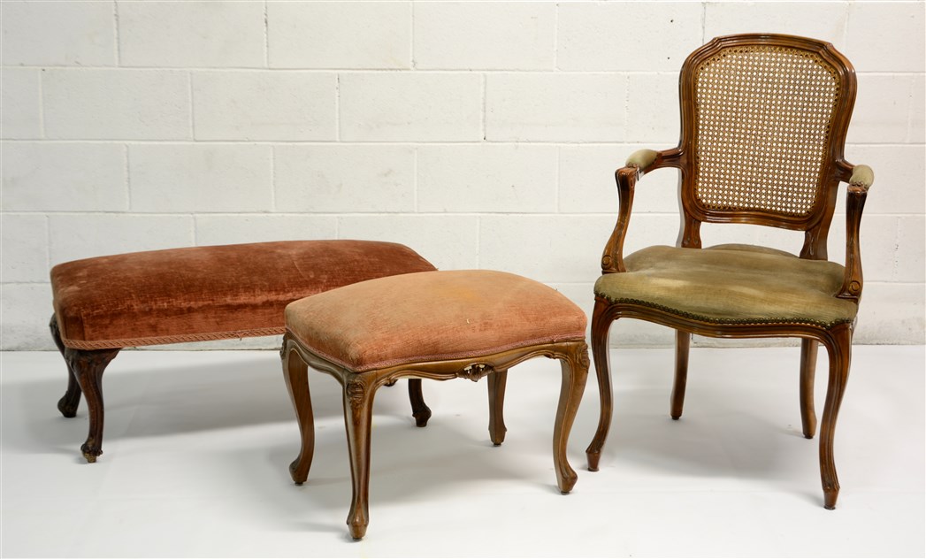 Lotto composto da due panchetti e una poltrona di epoche e fatture diverse (dif