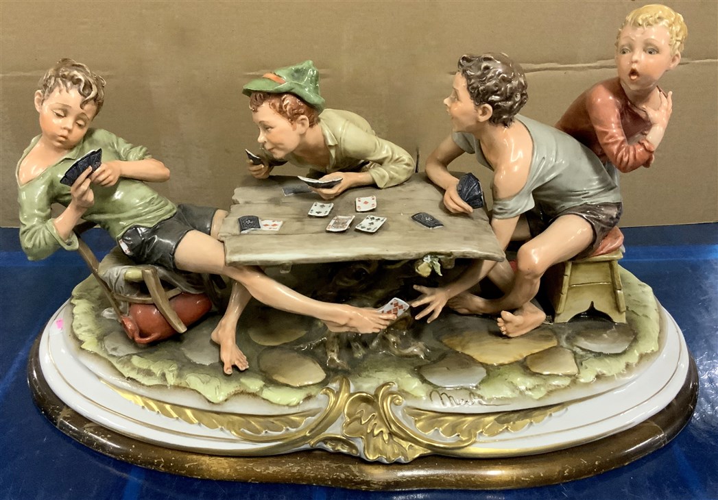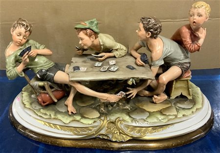 Bruno Merli "I bari" gruppo in porcellana decorato in policromia (cm 50x25) Pog