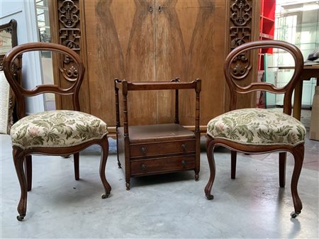 Lotto composto da due sedie del secolo XIX e un comodino a un ripiano e due cas