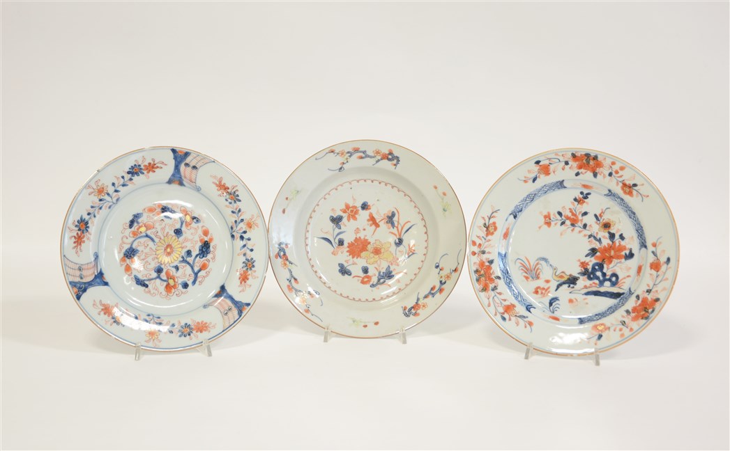 Lot 1352 | Tre piatti in porcellana a smalti Imari decorati con motivi floreali (d. max cm