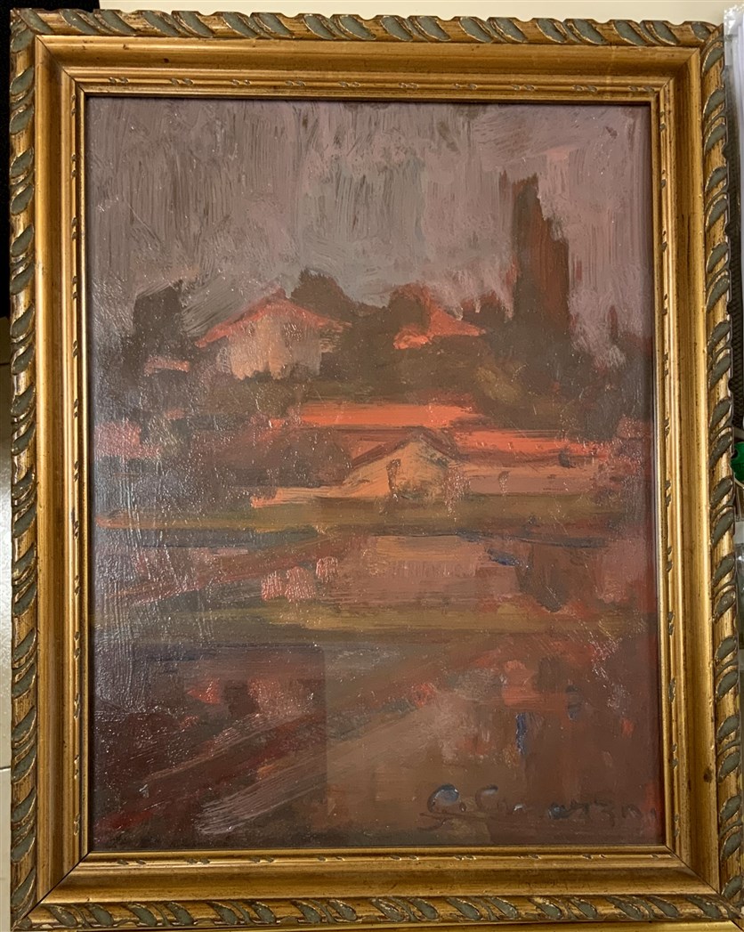 Lotto di due dipinti ad olio su masonite raffiguranti paesaggi (cm 30x40) (lievi difetti)