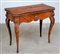 Tavolino da gioco lastronato in legno con gambe e fascia mosse, guarnizioni in