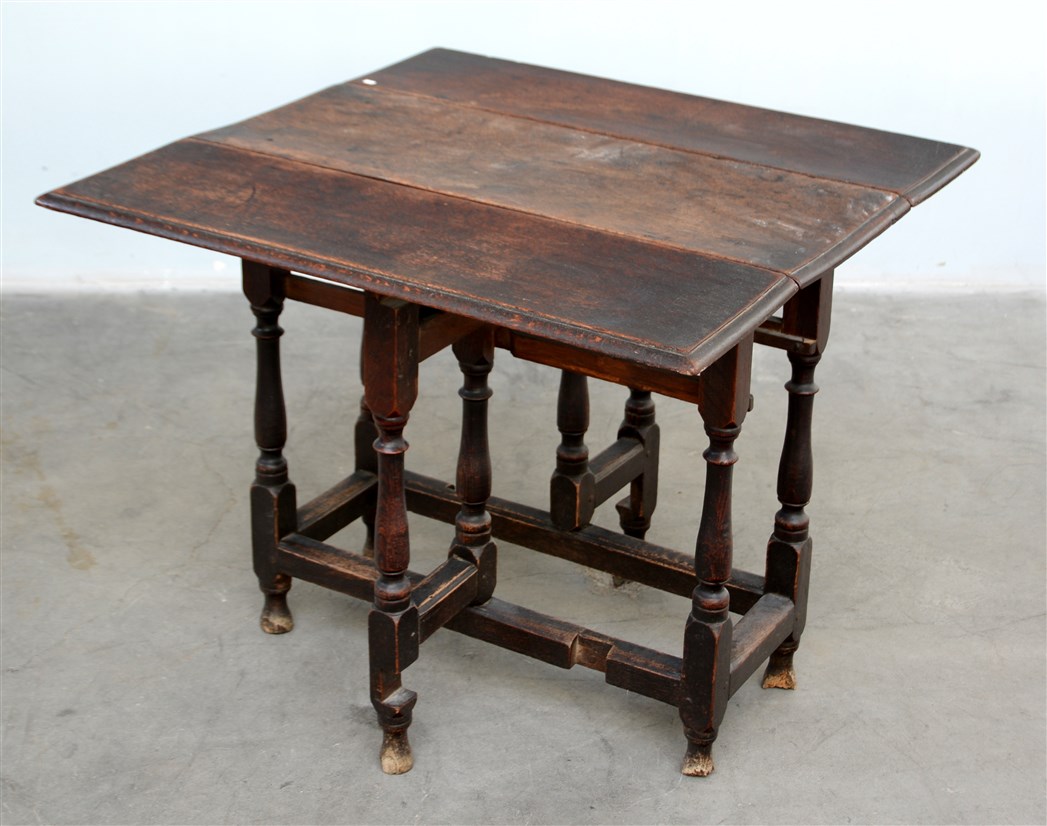 Tavolo ad alette con sostegni torniti e traverse dritte (cm 82x66x35) (difetti)
