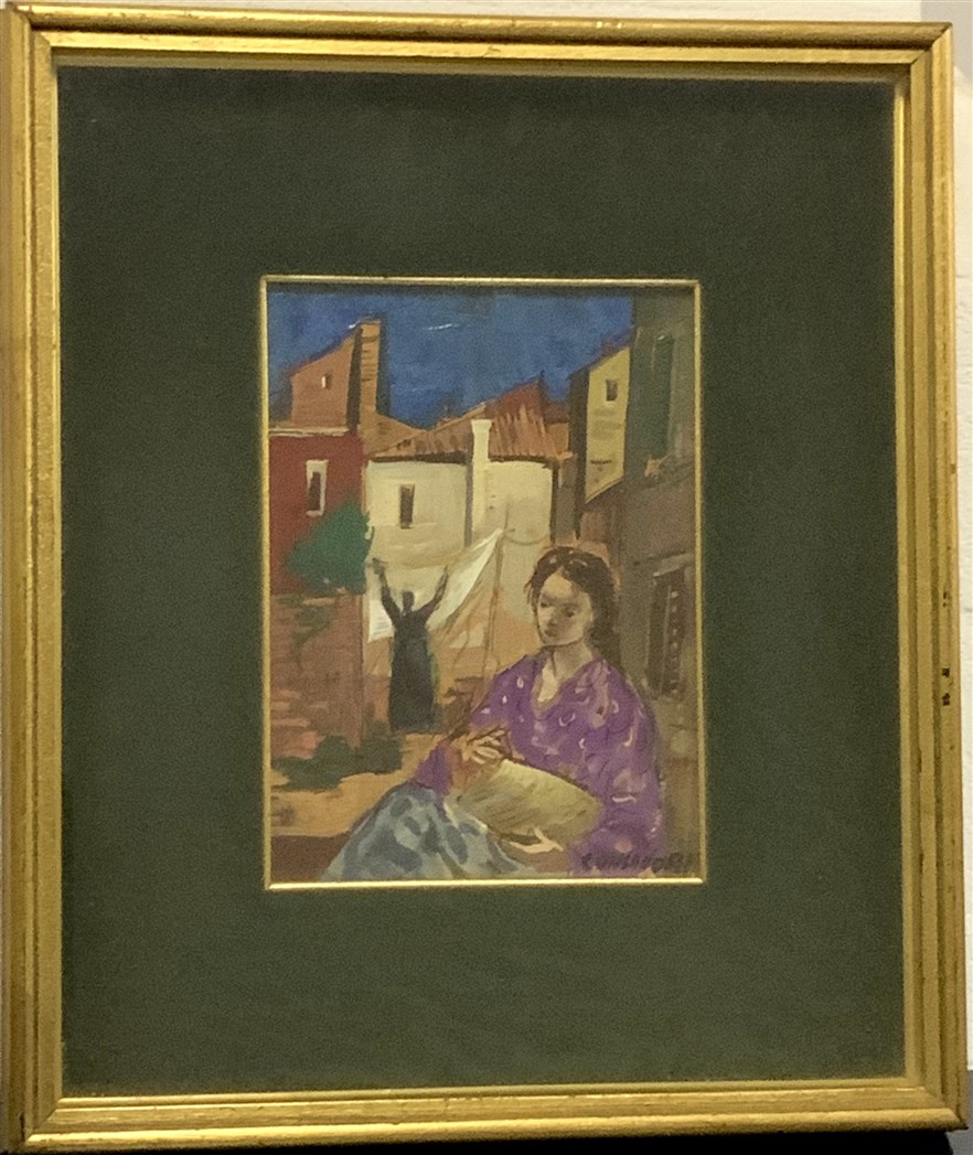 Silvio Consadori "Paesaggio con figure" tecnica mista (cm 22x17) Firmato in bass