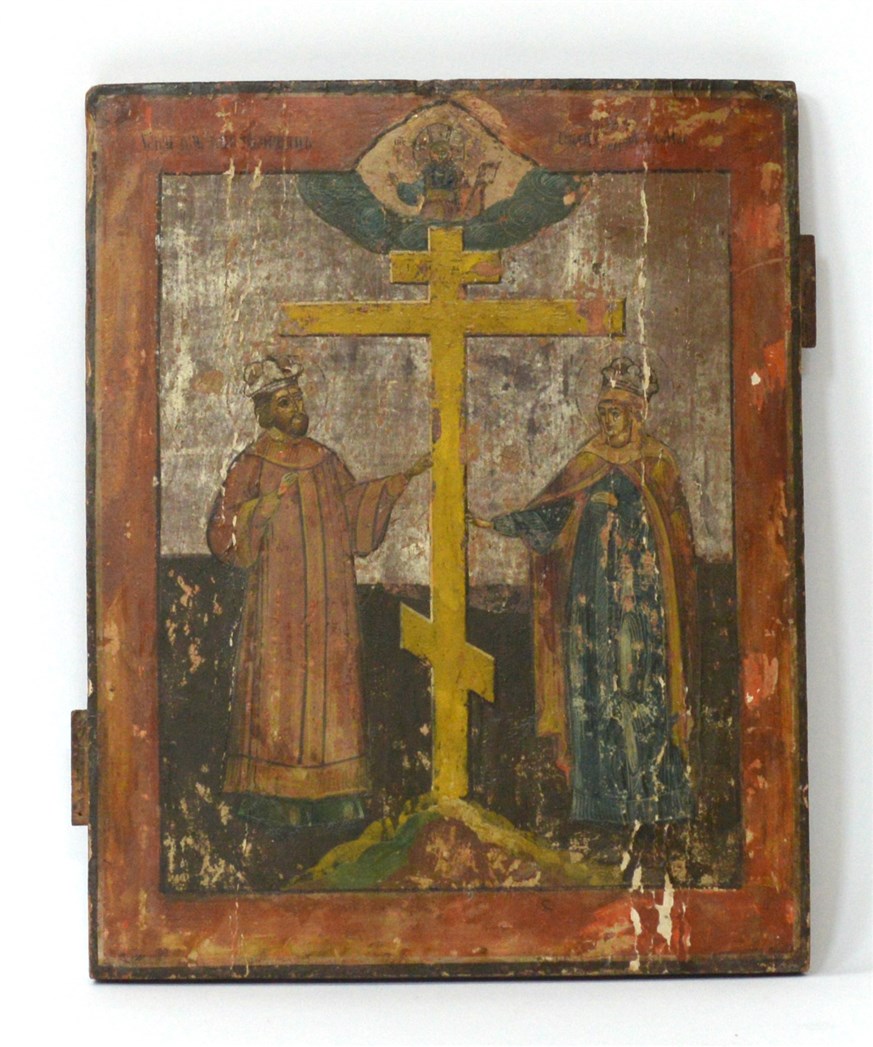 Icona su tavola raffigurante Costantino e Sant'Elena, secolo XIX (cm 40x32) (difetti e mancanze)