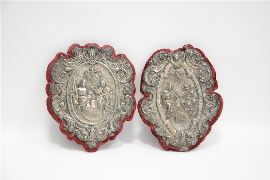 Coppia di fregi in argento sbalzato a scene religiose con marchio di Napoli del