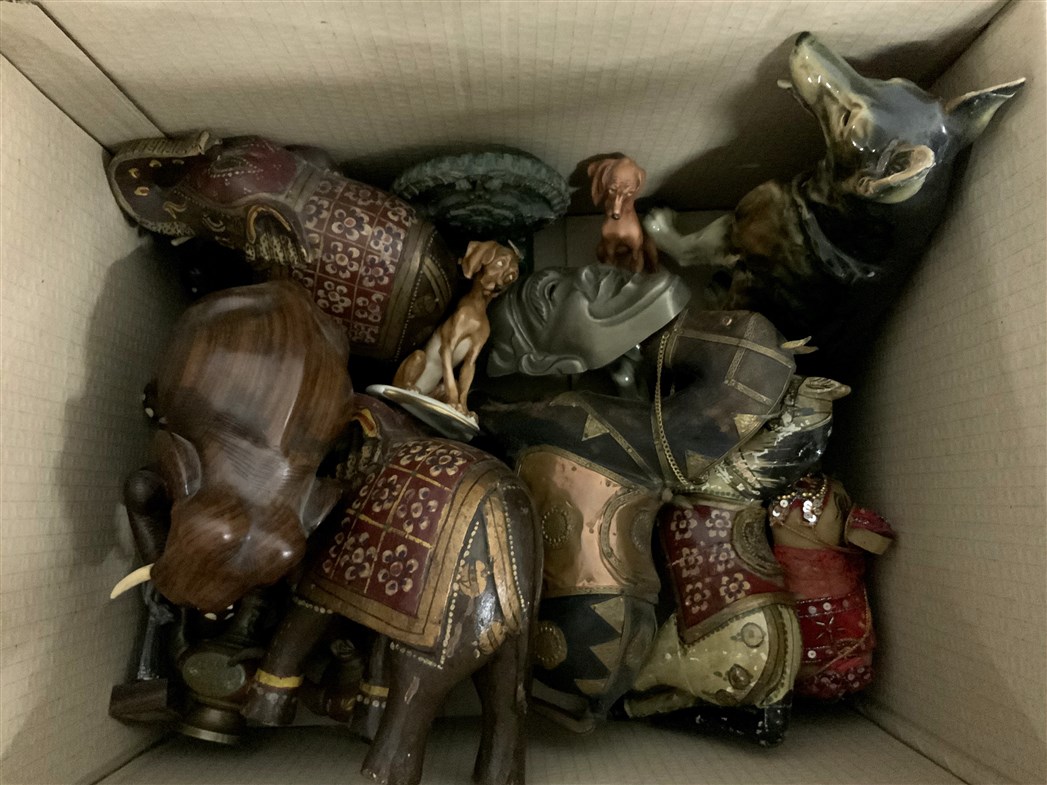 Cartone contenente numerosi oggetti di divera fattura e materiale (difetti)