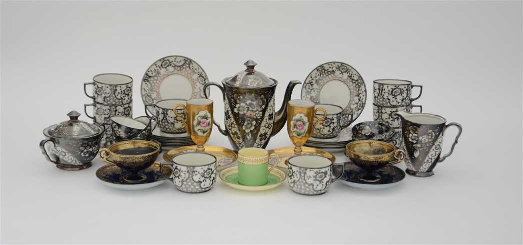 Cartone contenente parti di servizi da tè e caffè di manifatture differenti (difetti)