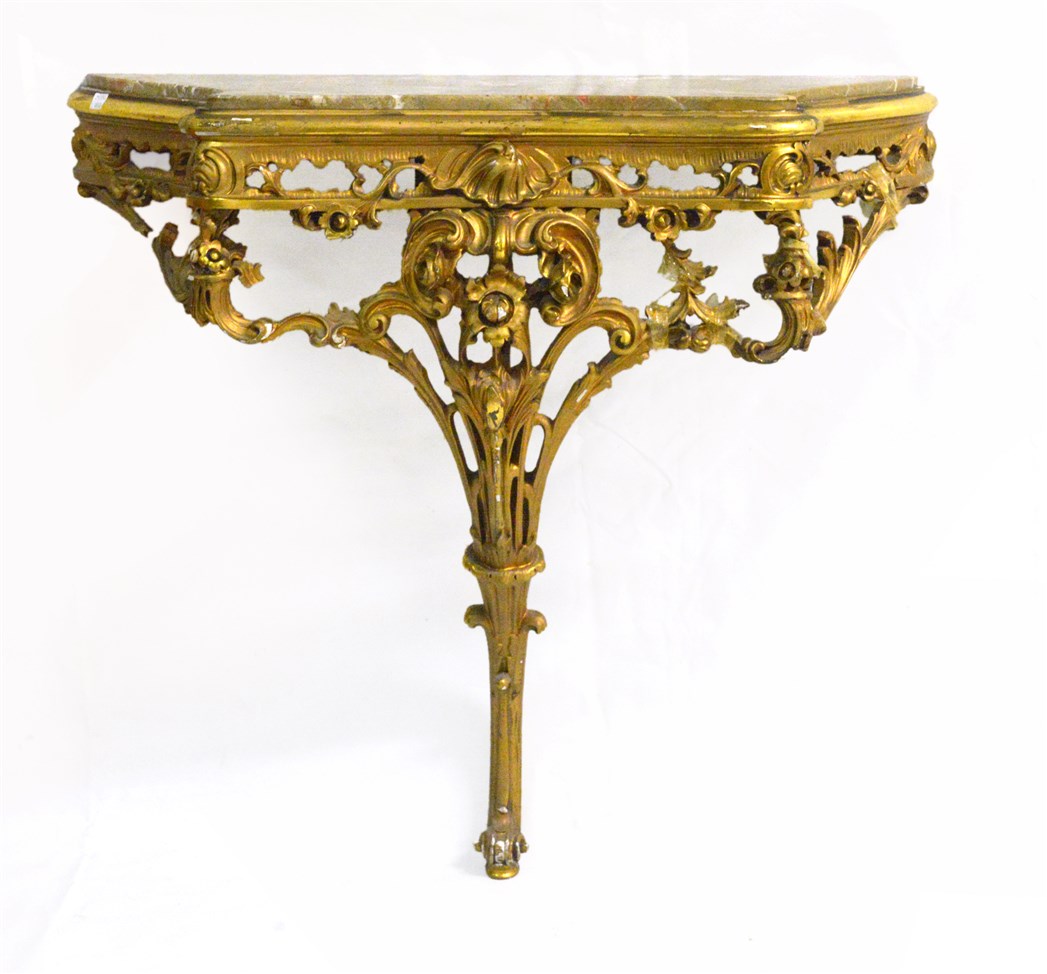 Lot 1459 | Lotto composto da consolina con piano in marmo e una specchierina in legno dora