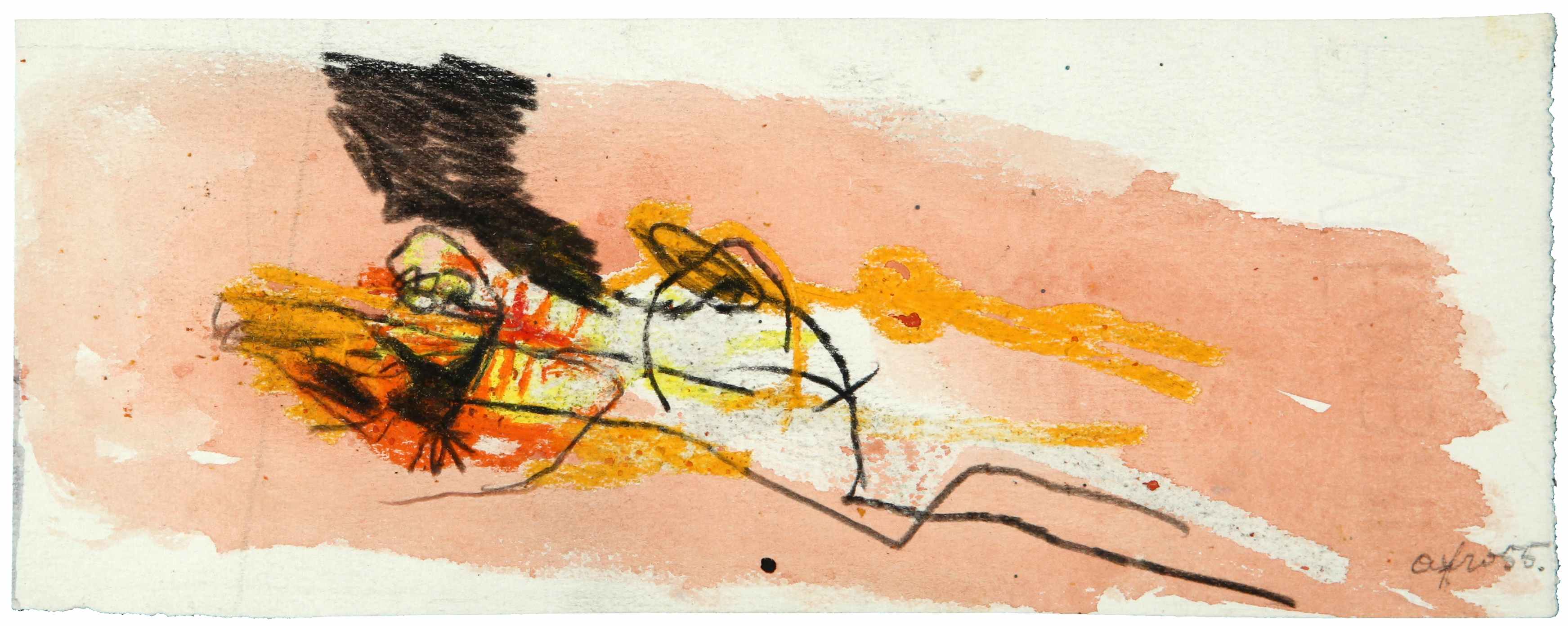AFRO BASALDELLA Figura 1955 tecnica mista su cartoncino cm 7 x 18 firmata e datata in basso a destra comprato dall'attuale proprietario direttamente dall'artista