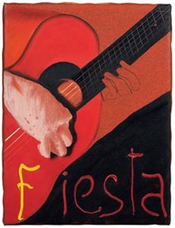 Aldo Mondino Torino 1939 - 2005 Fiesta, 1995 Olio su linoleum, cm. 80,5x60,5 Titolo, firma e data al verso: Fiesta / Mondino 95: eti- chetta Giampaolo Becherini Arte Contemporanea, Fi- renze. Foto autenticata dall'artista (in fotocopia).