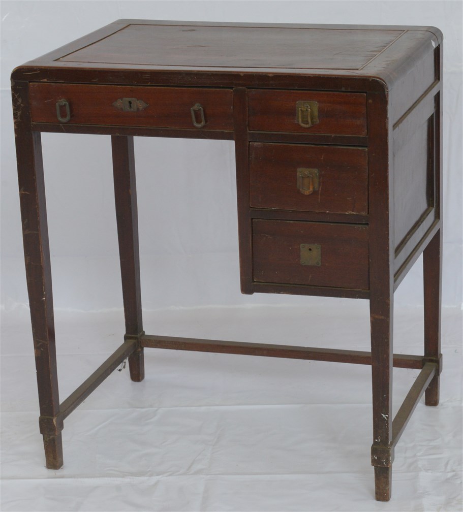 Piccolo scrittoio impiallaciato a tre cassettini laterali ed uno sottopiano 8cm 65x74x46) (difetti e mancanze)