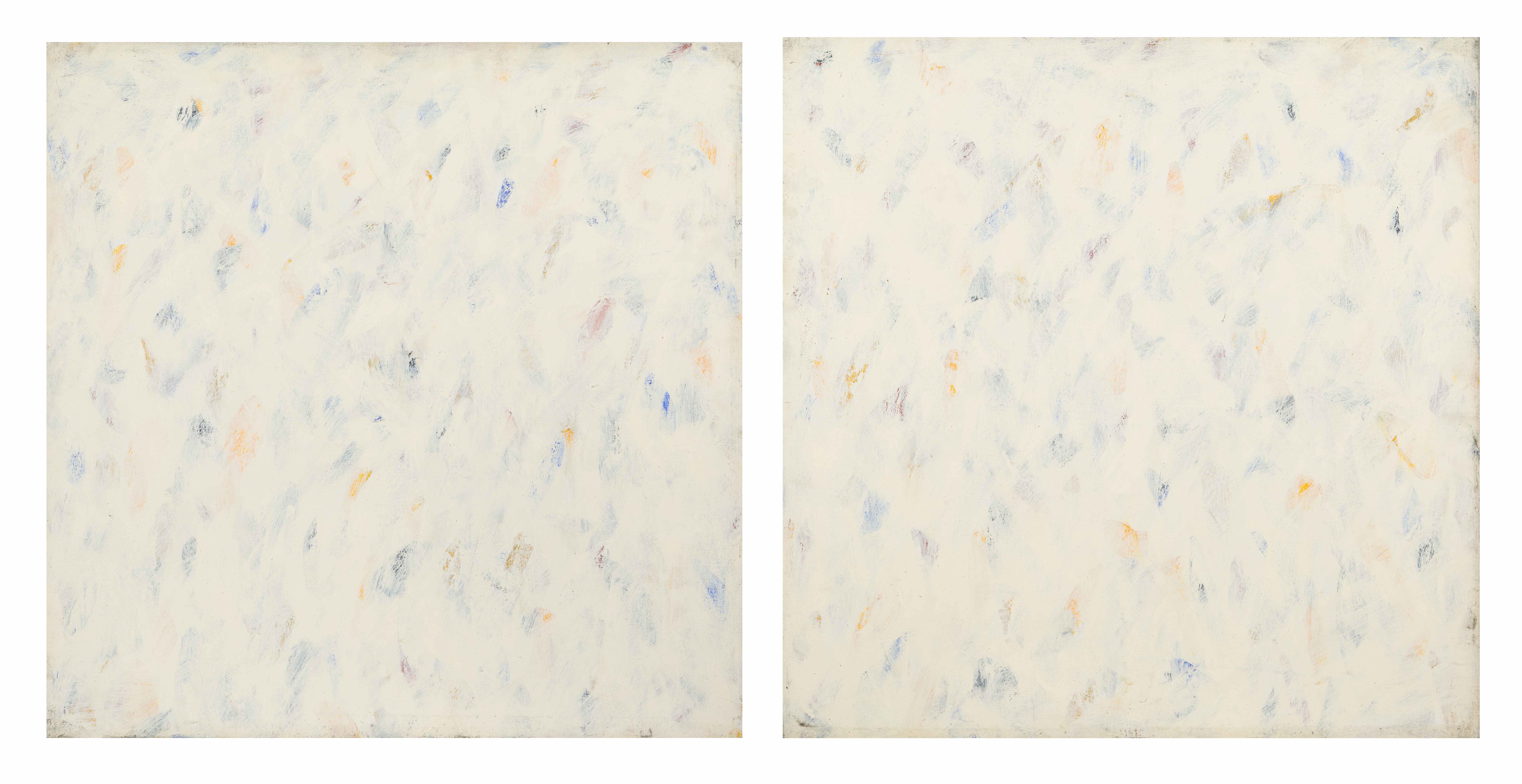 BERGHUIS JAAP Small Paintings 1976 acrilico su tela cm 70 x 140 (70 x 70 cadauno) firmato e titolato sul retro etichetta La Bertesca - Genova
