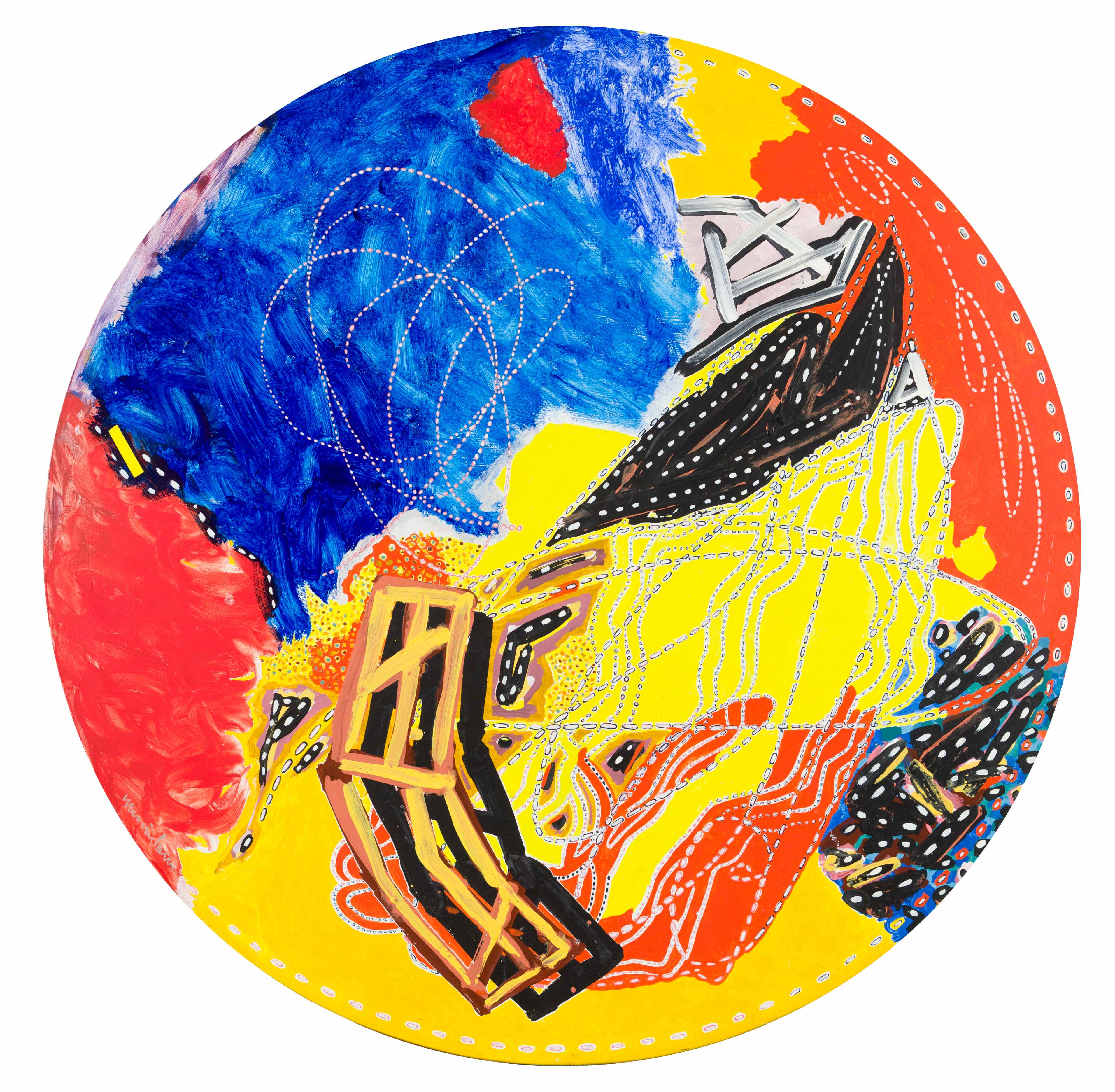 PLINIO MESCIULAM Vacanza 1998 olio su tavola, diametro cm 80 firmato e titolato sul retro