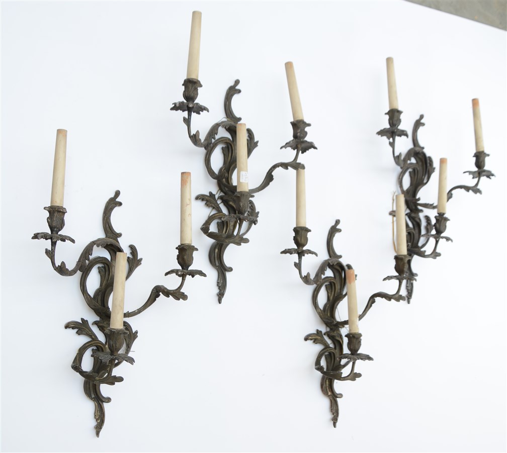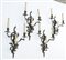 Gruppo di quattro appliques a tre fiamme decorate a ramage (h. cm 50) (difetti)