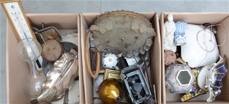 Tre cartoni contenenti numerosi oggetti diversi (difetti)