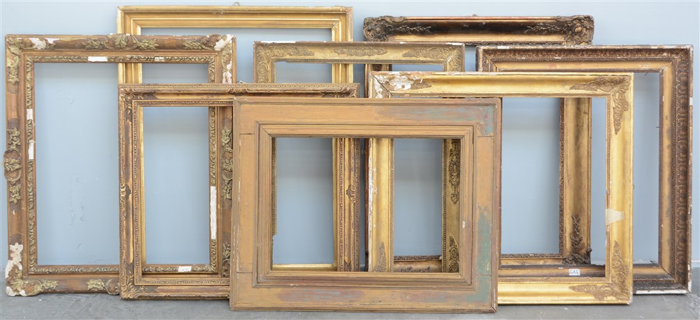 Lotto composto da otto cornici di epoche, dimensioni e decori diversi (difetti e mancanze)