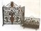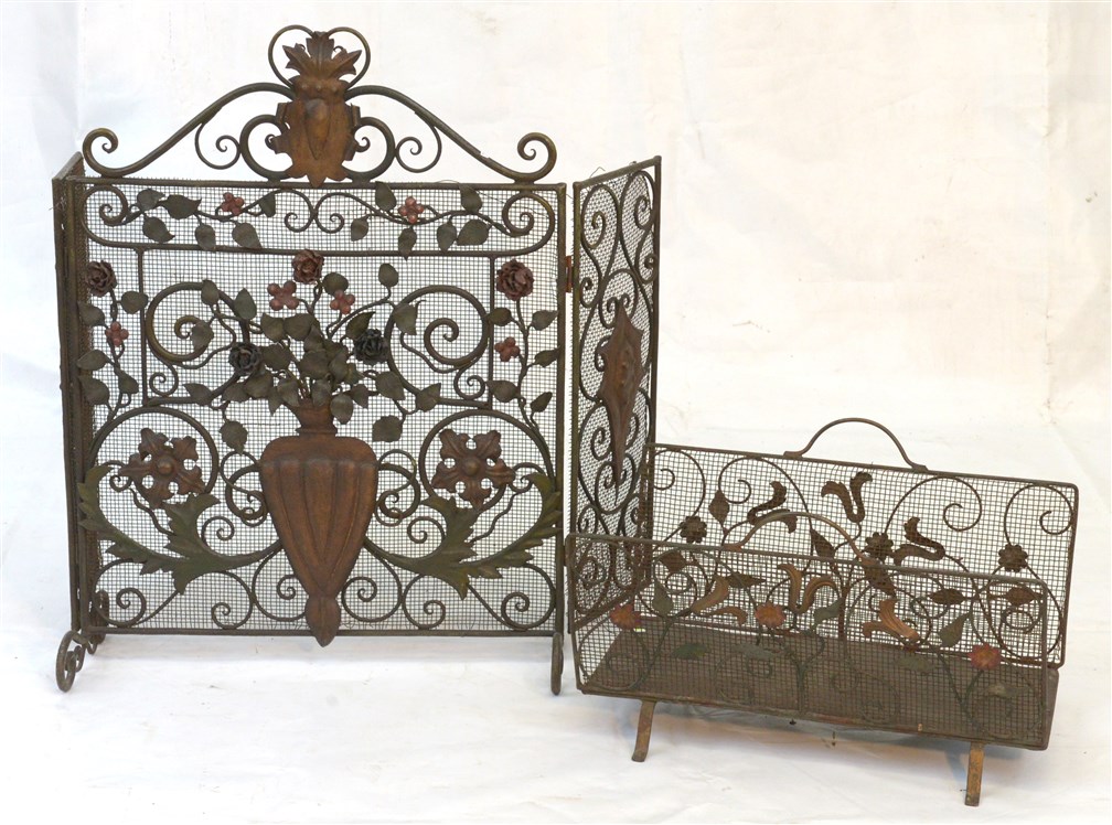 Parascintille e portalegna in ferro decorato in policromia a fiori (difetti)