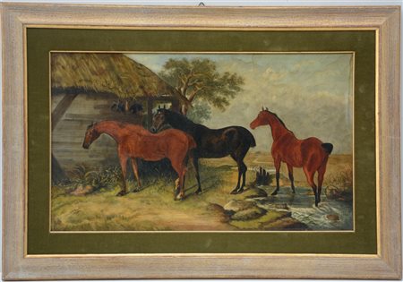 J. G. Black "Cavalli" olio su tela (cm 30x50) Firmato e datato '89 in basso a sinistra. In cornice