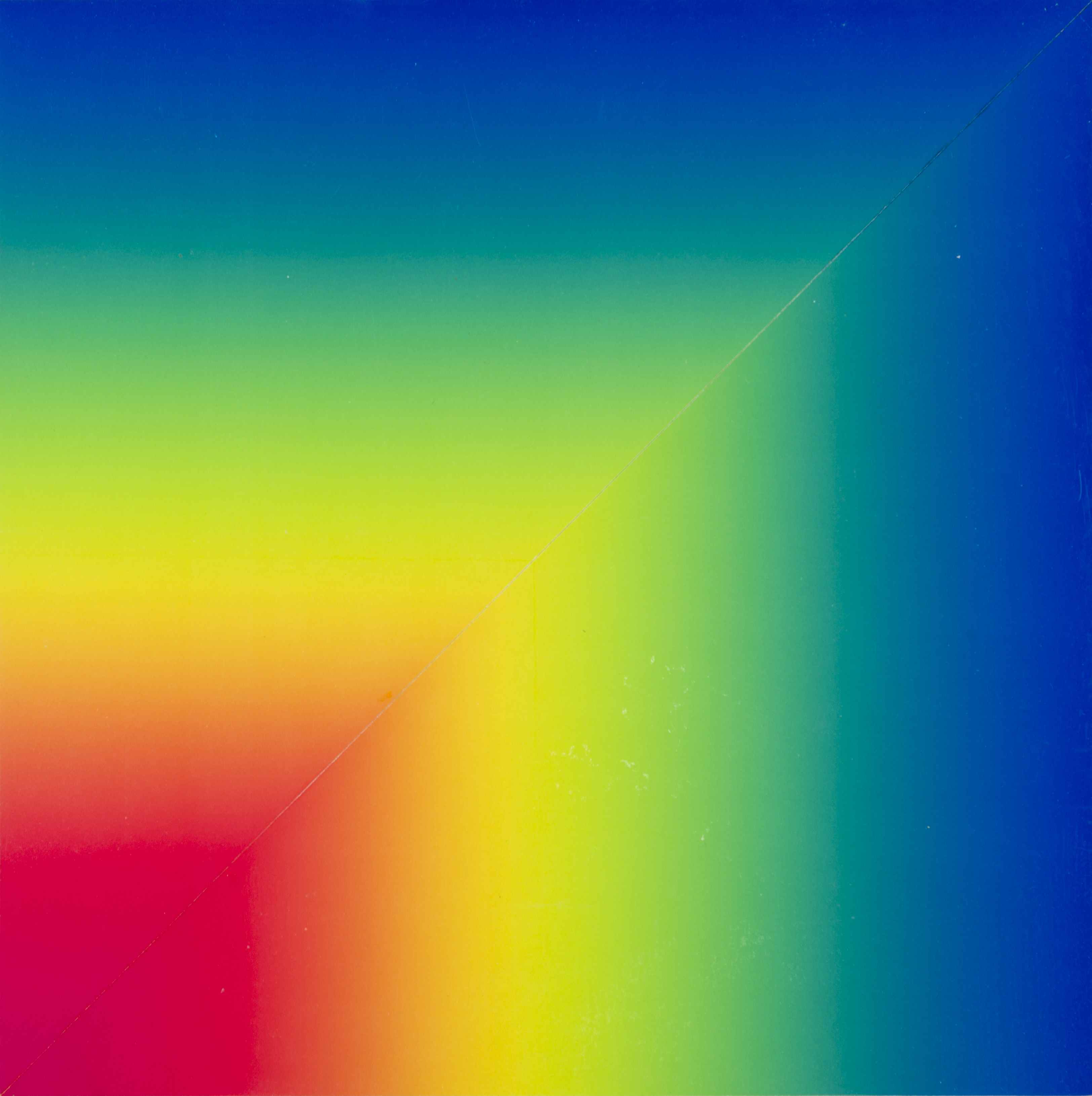 GETULIO ALVIANI Cromia spettrologica 1974 smalto su carta su tavola cm 33 x 33 firmato e titolato sul retro autentica dell'artista su fotografia timbro atelier dell'artista sul retro