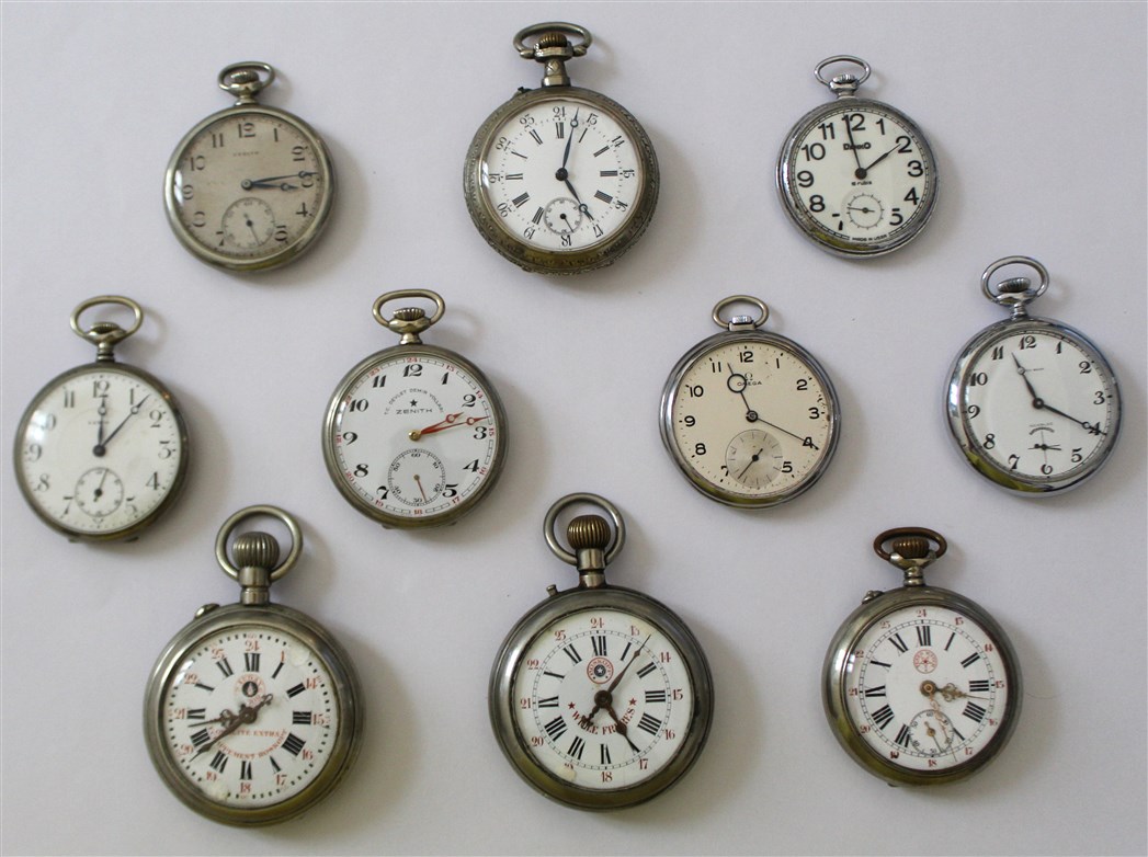 OMEGA, LANCO, ZENITH, ALTRI Lotto composto da dieci orologi da tasca in argento