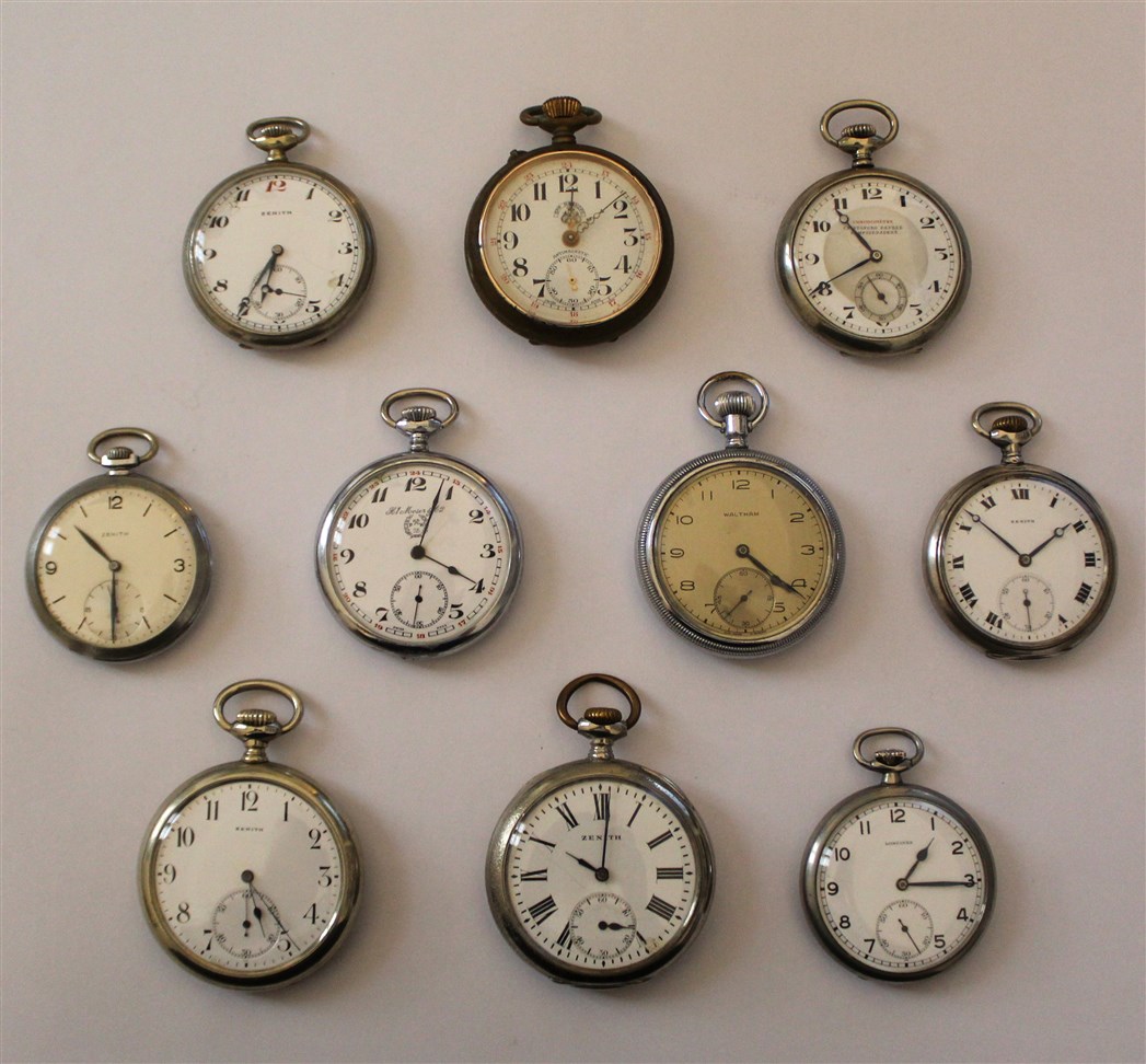 LONGINES, ZENITH, WALTHAM E ALTRI Lotto composto da dieci orologi da tasca in a